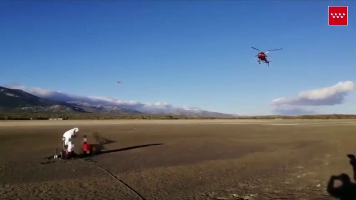 Rescatan a un ciclista en helicóptero tras quedar atrapado en el barro del embalse de Santillana