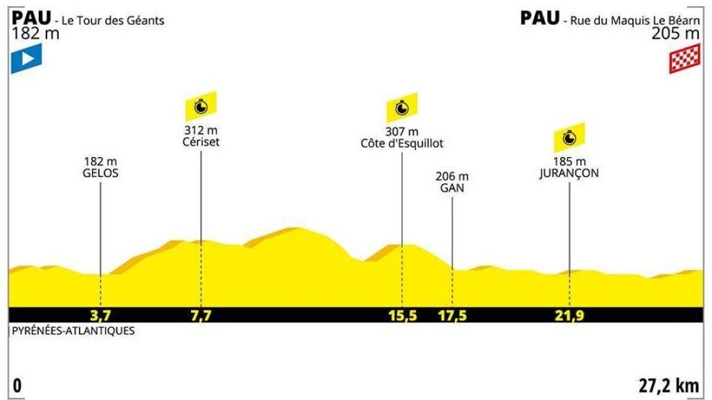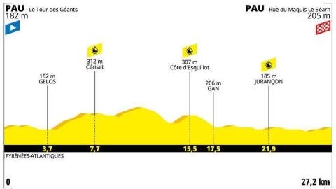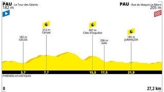La etapa consta de un recorrido de 27,2km por la ciudad pirenaica de Pau. El perfil de la carrera está equilibrado para los especialistas en esta disciplina contiene dos partes: una primera con varios repechos dispuestos y una segunda más lisa para exprimir las fuerzas de los ciclistas.