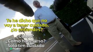 Al llegar a un párking, el conductor se apeó del vehículo con una pistola en la mano y la dirigió hacia uno de los ciclistas, intimidándoles. "Hola, señor. Has pasado muy cerca de nosotros", le dijo uno de ellos, añadiendo después: "Solo ten cuidado, por favor".