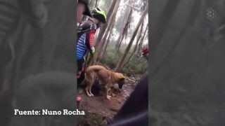 Un grupo de ciclistas rescató a un perro abandonado en el monte y atado a un árbol de manera que no podía ni alimentarse, ni beber y ni siquiera sentarse en el suelo. Ha sucedido en la localidad portuguesa de Valongo, cerca de Oporto.