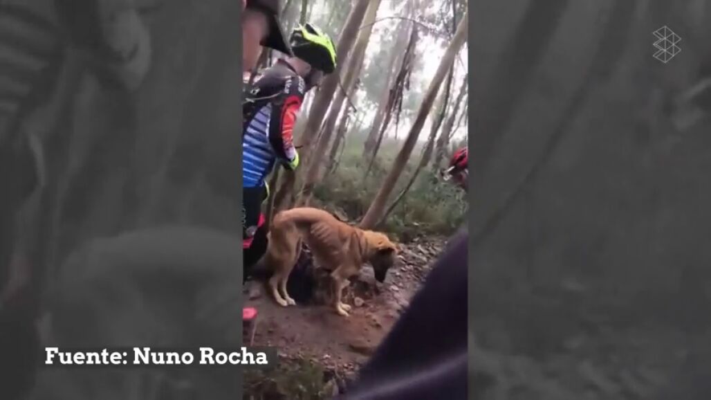 Un grupo de ciclistas ha rescatado en la localidad portuguesa de Valongo, cerca de Oporto a un perro abandonado en el monte y atado a un árbol para que no pudiera ni siquiera alimentarse.