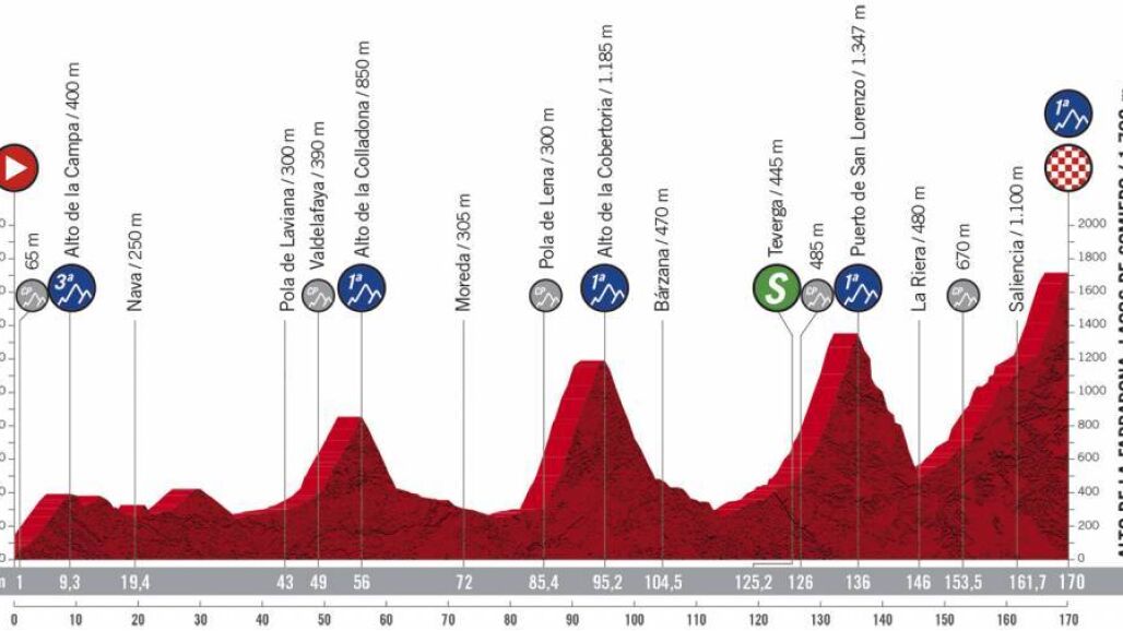El pelotón se enfrenta este sábado a una etapa de montaña, con cuatro puertos de primera categoría y uno de tercera. La etapa finaliza en subida, en el alto de Alto de La Farrapona,.