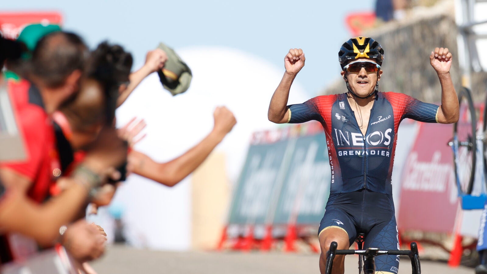 Richard Carapaz ha sumado hoy su segunda victoria de etapa en esta Vuelta España tras imponerse por solo 8 segundos al venezolano Miguel Ángel López. El líder Evenepoel sufrió en la subía a la Pandera, donde cedió terreno con Roglic, que ya está a 1:49 del liderato.