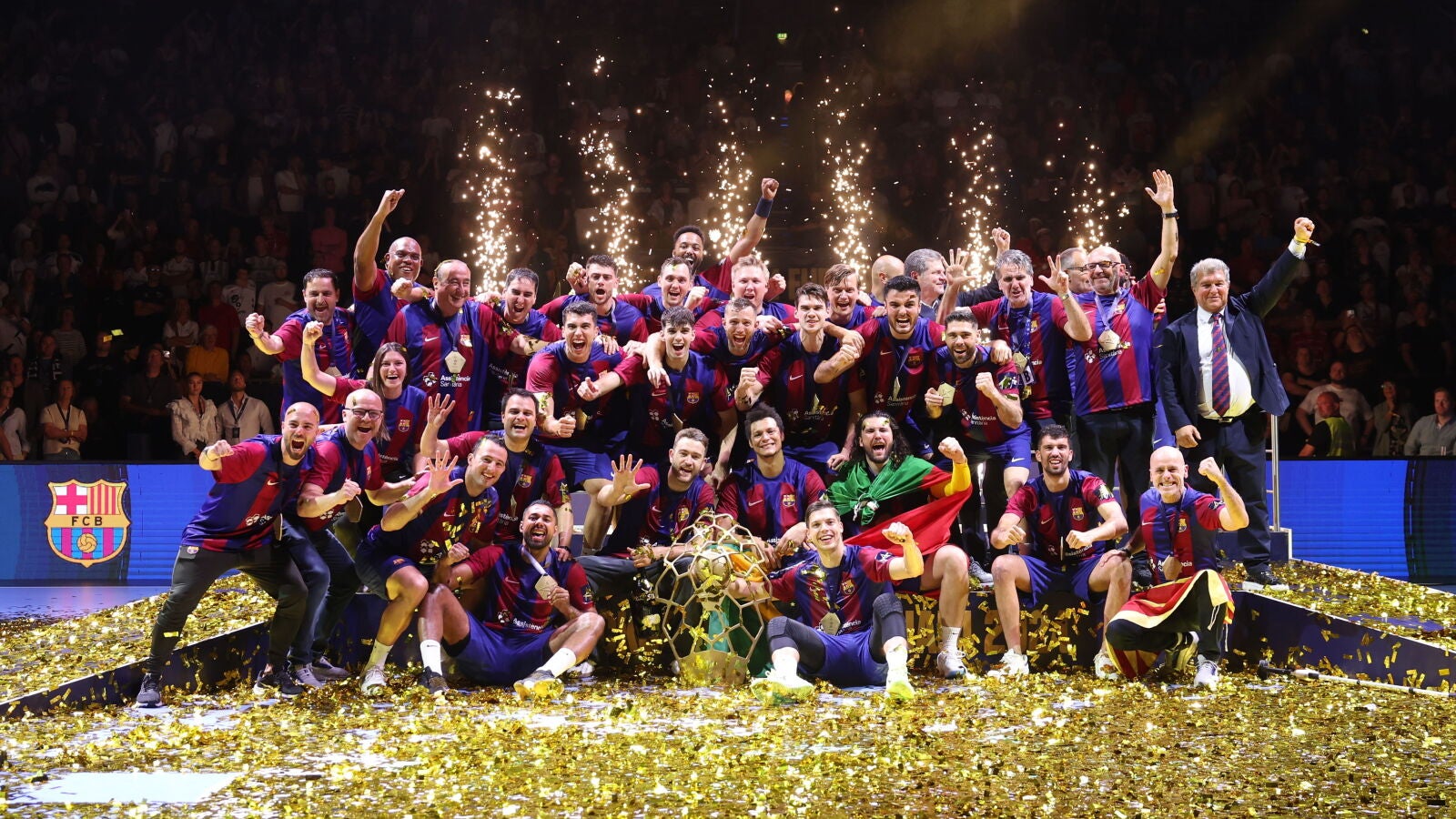 Enric Masip, exjugador de balonmano y actualmente en la comisión deportiva del Barcelona, celebró este domingo la duodécima Liga de Campeones lograda por el equipo de balonmano ante el Aalborg danés (30-31), una ajustada final disputada el Lanxess Arena de Colonia (Alemania). Se trata de la segunda Champions para el club esta temporada tras la conquistada por el equipo femenino de fútbol. De esta forma, el club culé puede presumir de haber conquistado dos títulos continentales este año, un hecho que le sirvió a Masip para transmitirle a Joan Laporta una comentada frase que el propio Masip desveló a TV3.