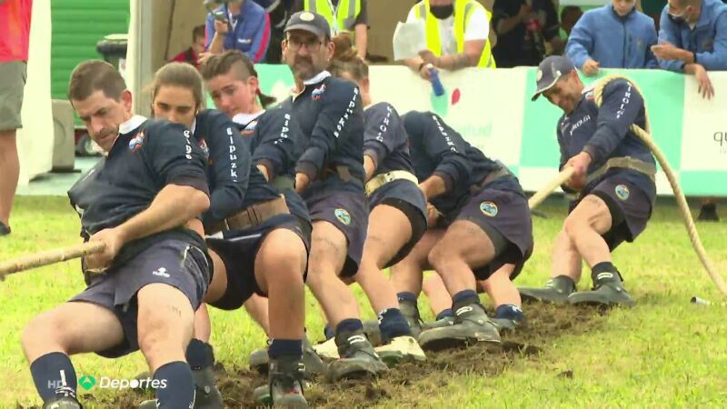 El mundial de sokatira, o conocido popularmente como 'tira y afloja' ha comenzado en Getxo, Vizcaya. Consiste en una soga de 32 metros y dos equipos de ocho tiradores cada uno, gana quien hace un arrastre de cuatro metros en un máximo de tres tiradas