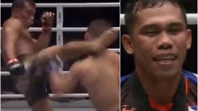 El filipino Robin Catalan protagonizó unos momentos de verdadera tensión tras propinar esta brutal patada que impactó en la cabeza de Gustaco Balart en un combate de MMA.