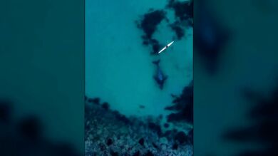 Un dron ha captado unas imágenes muy poco frecuentes durante la travesía de un deportista a bordo de un kayak por la playa de Bondi, una de las más famosas de Australia. "Había visto ballenas muchas veces antes, pero ninguna se había comportado como esta. Me siguió y estuvo conmigo todo el tiempo", explicaba el kayakista Glen Annear aún sorprendido por el comportamiento de la ballena de unos 15 metros que lo acompañó bajo su kayak.