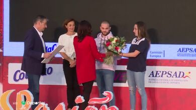 Los hijos de la fallecida, David y Olivia, junto con su tía, Dolores Fernández Ochoa, han recibido un ramo de flores de mano de la secretaria de Estado, María José Rienda, en reconocimiento a toda su carrera deportiva.