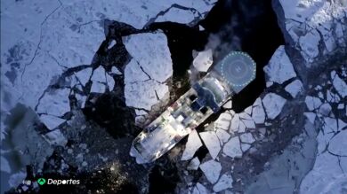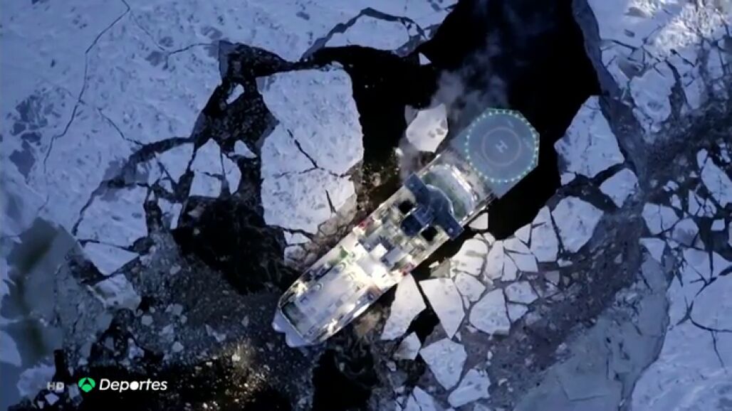 "Al acercarnos a la zona el mayor reto era ir a una velocidad mínima porque el barco podía hundir la placa de hielo en la que se encontraban y hundirlos", relata el capitán del rompehielos, Yegor Agapov.