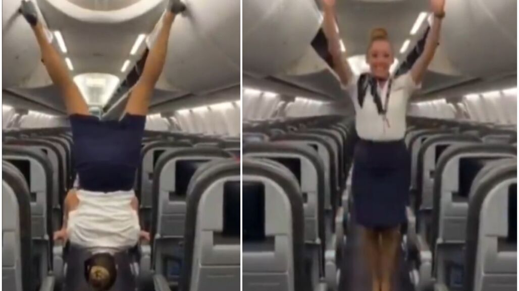 El vídeo viral de la 'azafata acróbata' que revoluciona las redes