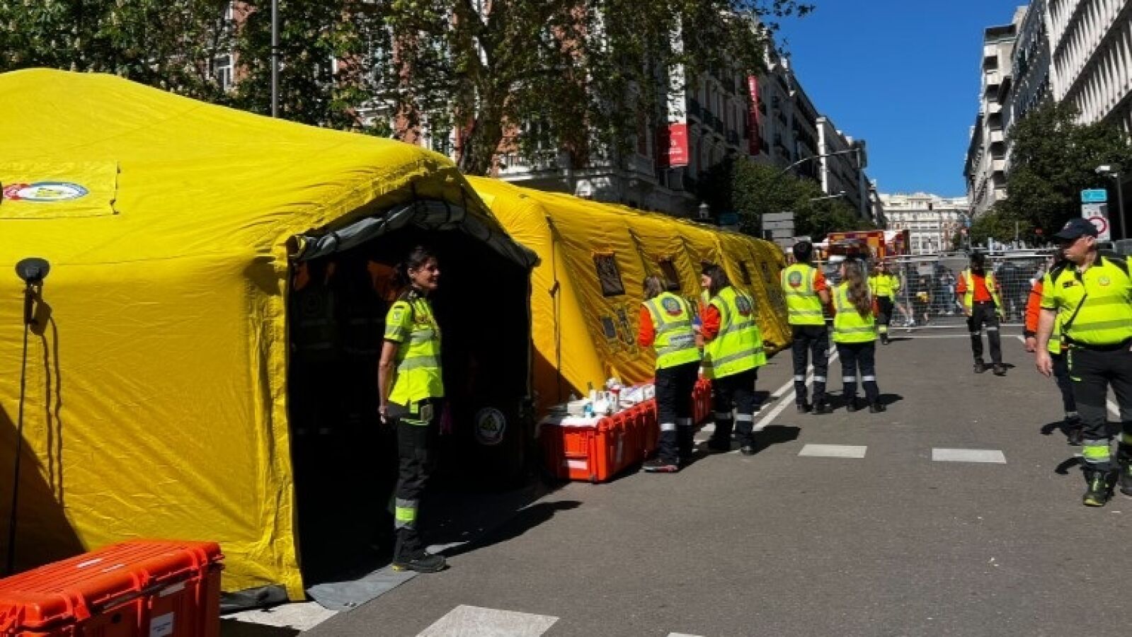 Para garantizar la asistencia sanitaria, el dispositivo contó con más de 170 profesionales distribuidos principalmente en tres puestos sanitarios avanzados ubicados en Casa de Campo, la plaza Colón y la meta, situada junto al Palacio de Cibeles. Además, equipos móviles de intervención circularon por el recorrido en bicicleta, motocicleta y a pie.