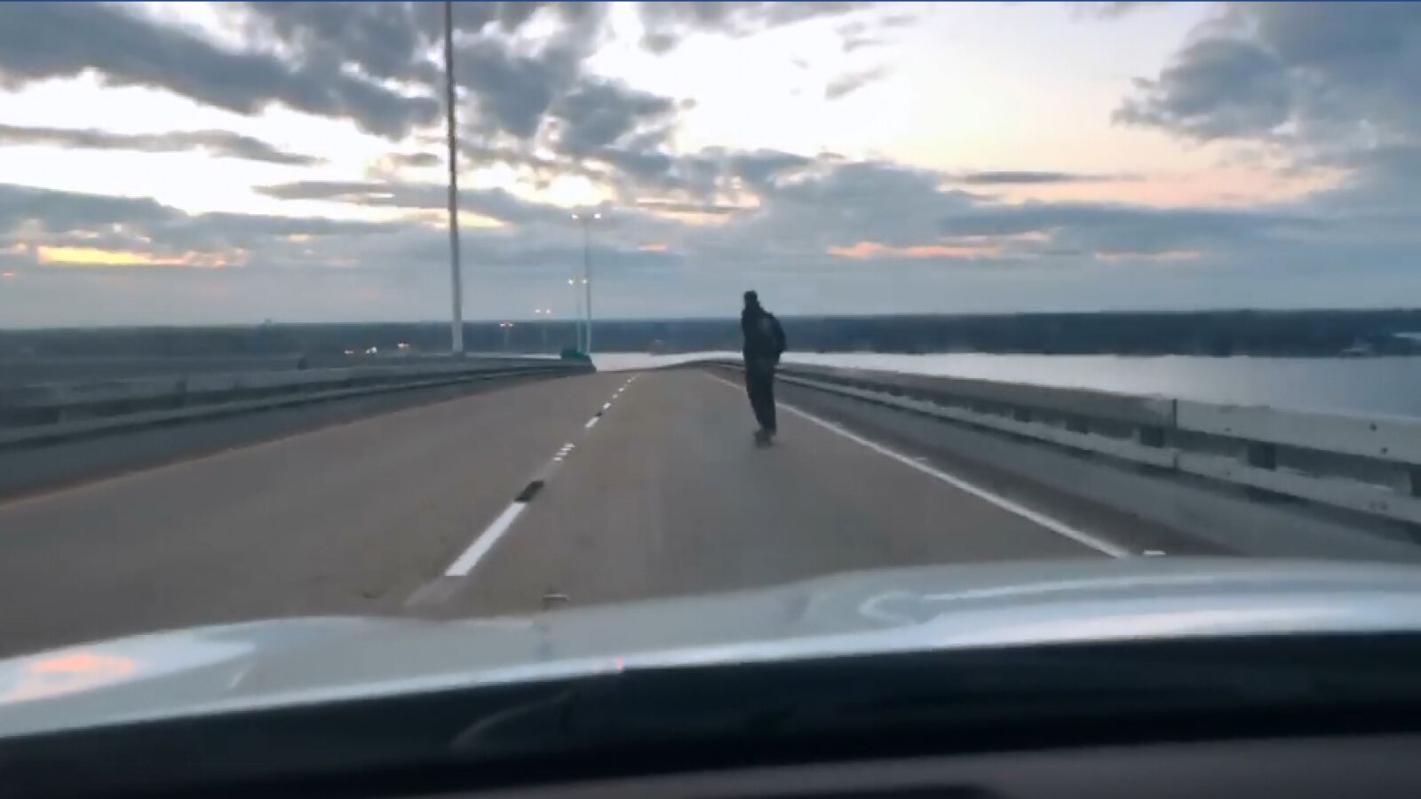 Louis C. McGlone es la persona que patinaba por la carrera mientras su pareja, Lindsey O. Hullet, le graba desde el coche mientras conducía.