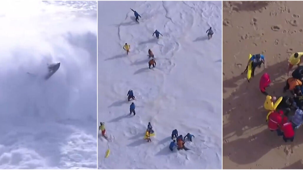 El surfista Alex Botelho fue evacuado a un hospital, donde permanece estable y consciente, tras un espeluznante accidente en una ola gigante junto a su jet-ski, Hugo Vau. La secuencia es escalofriante.