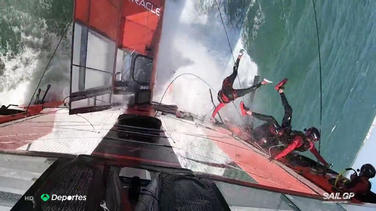Menudo susto tuvo el equipo español en la prueba de la SailGP en Cádiz. Impresionante el vuelco del F50 Victoria que los dejó fuera de la competición. Antena 3 Deportes ha hablado con Florian Trittel y Diego Botin, tripulantes de la embarcación española.