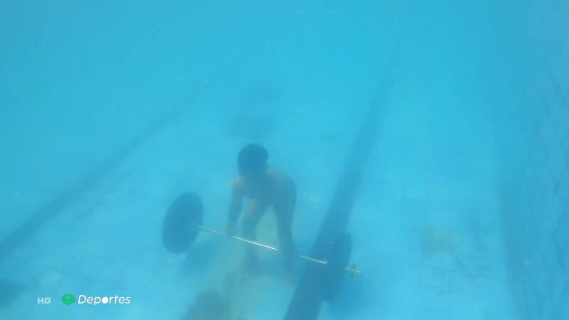 Lanzarse al agua es parte de su rutina, se zambulle en la piscina y a levantar peso. Es un ejercicio que realiza varias veces al día. "Bajo a una profundidad de 4 metros, hago 5 levantamientos y subo 60 kilos. Nadie en el mundo lo había hecho antes. Ha sido la primera vez".