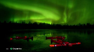 Flotar en un lago helado mientras se contempla una aurora boreal, la última e increíble experiencia en Laponia