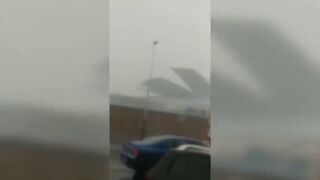 Una fuerte tormenta de granizo arranca el tejado del pabellón de Ourense: "¡Es un huracán!"