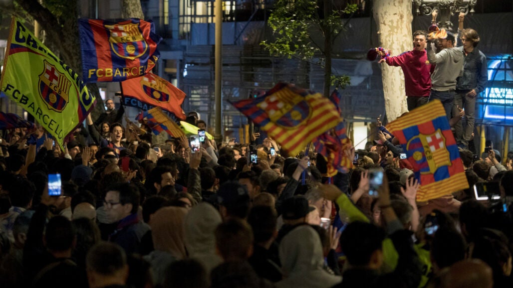 La afición del Barcelona se congrega en Canaletas para celebrar la 25ª Liga de su equipo
