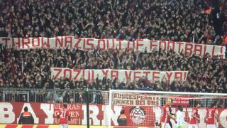 La afición del Bayern de Múnich muestra una pancarta en contra de Zozulya: "Fuera nazis del fútbol. Zozulya vete ya"