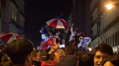 La afición de River Plate celebra la Copa Libertadores en la Puerta del Sol