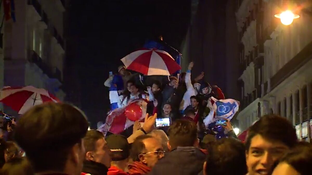 River Plate conquistó la Copa Libertadores en el Santiago Bernabéu tras ganar 3-1 a Boca Juniors y su afición no tardó en desplazarse hasta la Puerta del Sol para festejar el título. El centro de Madrid se convirtió poco a poco en un lugar de cánticos de los aficionados de Millonarios, que lo celebraron a lo grande.