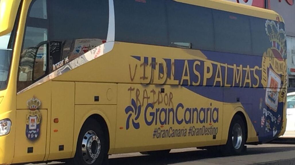 El autobús de las Palmas ha sufrido la ira de algunos aficionados sevillistas, quienes pintaron 'Vitolo traidor', refiriéndose al pasado del jugador canario, que estuvo en el conjunto sevillista cuatro temporadas. Vitolo regresa por primera vez al Sánchez Pizjúan después de su marcha.