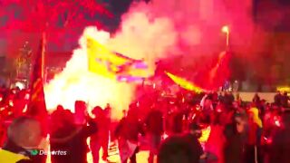 Los seguidores, sin tener en cuenta las recomendaciones sanitarias contra el coronavirus, se han reunieron en los alrededores del Camp Nou. Se han visto bengalas y hogueras. El partido de esta noche en Barcelona es a puerta cerrada y que los seguidores no podían acceder al Camp Nou.
