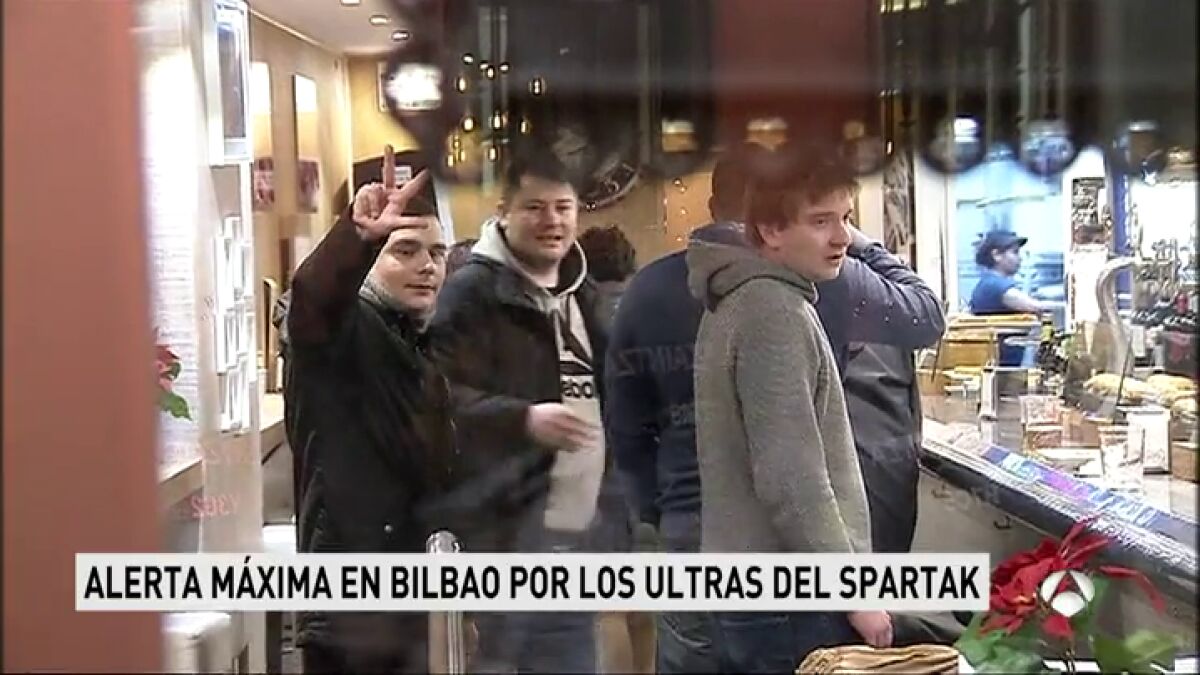 Más de 800 ultras han llegado a Bilbao con motivo del Athletic - Spartak de la Europa League. La seguridad se ha extremado por la presencia de los ultras rusos, siendo los que están sin entrada los que más preocupan a los miembros de seguridad.