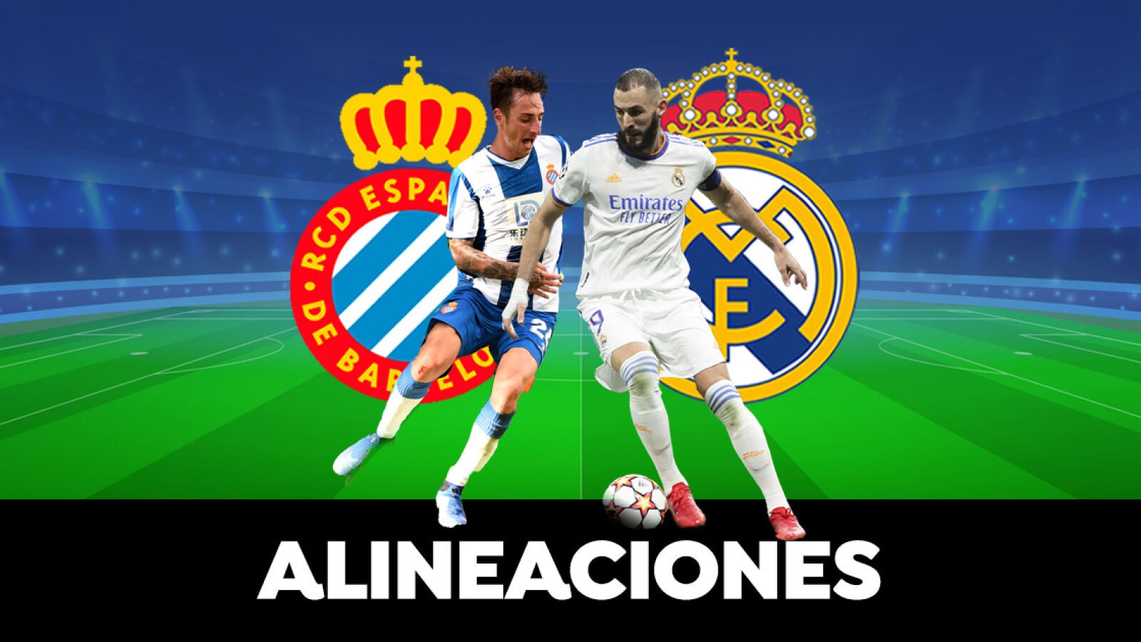 El Real Madrid visita el RCDE Stdium en la tercera jornada de La Liga en la que se mide al Espanyol. Consulta las alineaciones oficiales de Espanyol y Real Madrid.