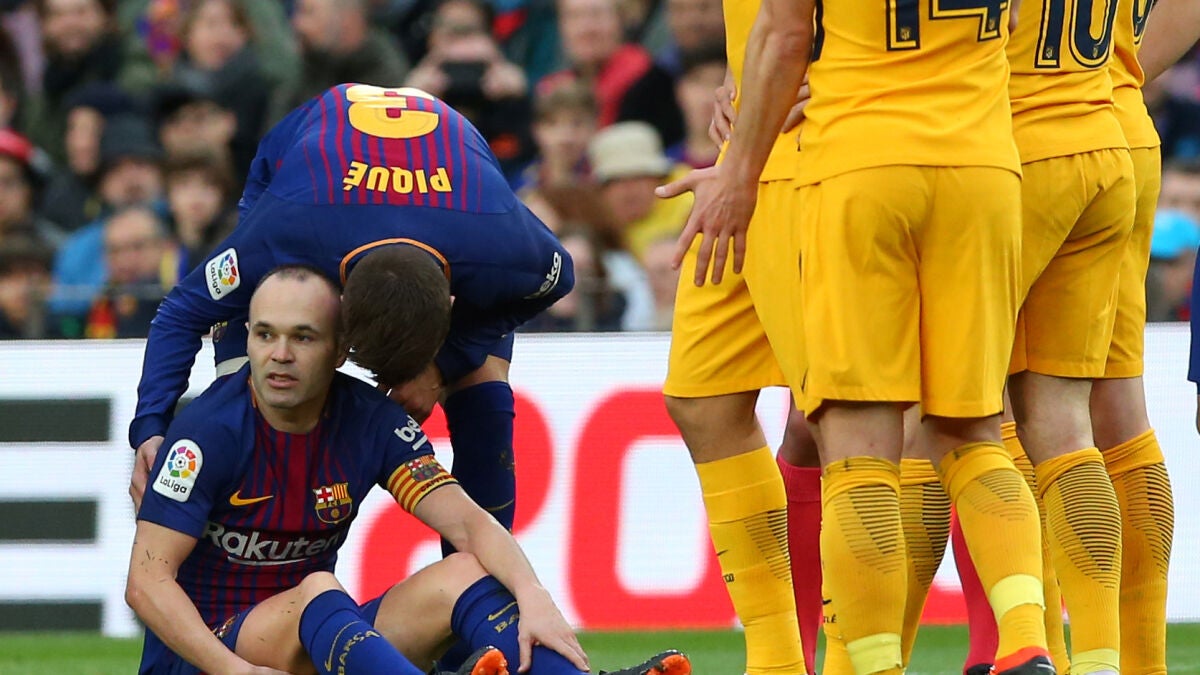 Andrés Iniesta no pudo ni tan siquiera terminar la primera parte del partido ante el Atlético. El manchego se llevó la mano a la parte trasera de su pierna derecha en una jugada con Vrsaljko y, a pesar de que intentó continuar, tuvo que poner rumbo al banquillo. El Barça ha confirmado que sufre una lesión en el bíceps femoral.