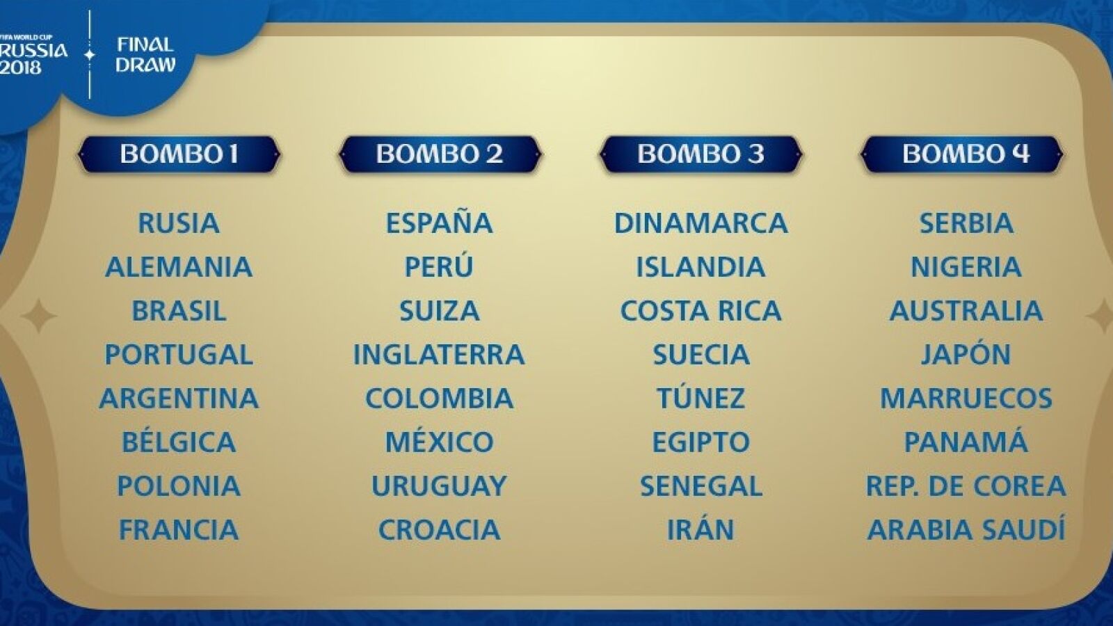 Bombos para el Sorteo Final de #Rusia2018