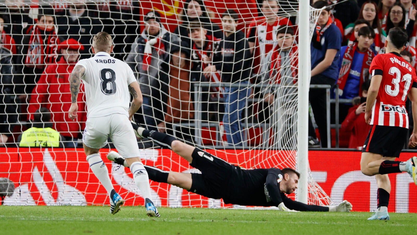 Pum, pum, pum. No necesita nada el Madrid. Error en defensa del Athletic, buena jugada de Rodrygo y gol marca de la casa de Kroos. Sentencian los de Ancelotti.