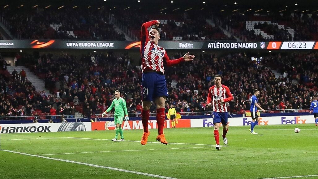 Un gol del francés Kevin Gameiro a los seis minutos prolongó la racha del Atlético de Madrid, con su sexta victoria consecutiva en competición rumbo a los octavos de final de la Liga Europa y a una semana decisiva por la Liga, y la suya propia, con su quinto tanto en sus últimos siete partidos (1-0).