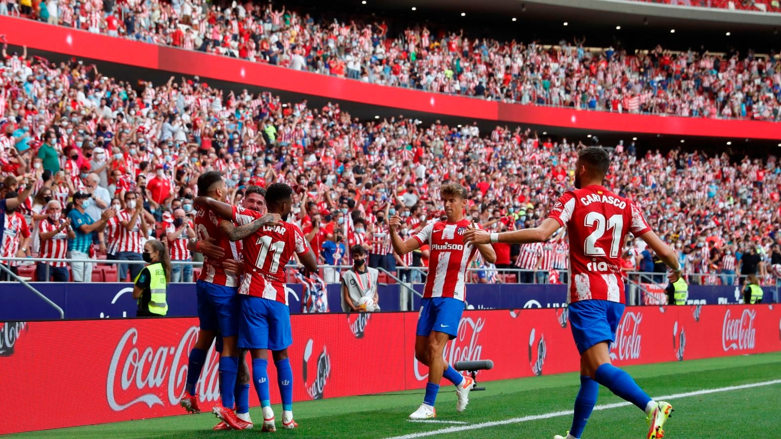 Los chicos de Simeone han vuelto a jugar bajo un Wanda Metropolitano con gente en sus gradas, como en todos los estadios, no se ha podido completar el aforo pero los miles de atléticos que han disfrutado del encuentro han apoyado de lo lindo a su equipo.
