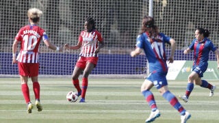 Reaccionaron bien las levantinistas que pudieron empatar tras un centro envenenado de la mexicana Charlyn al que no llegó por centímetros Alharilla. Tras el susto, el Atlético se rehizo y volvió a hacerse con el control del juego, aunque no pudo explotar la velocidad de la brasileña Ludmila ante la buena disposición defensiva de las valencianas.