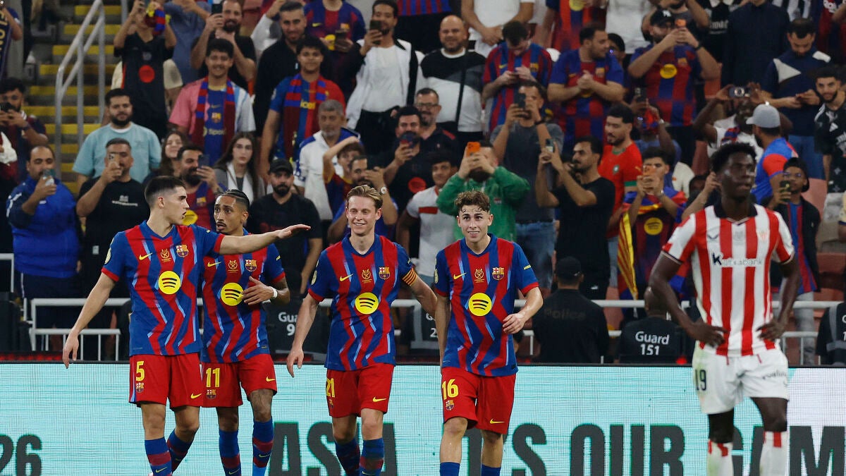 El campeón defenderá su corona el próximo domingo en la final de la Supercopa de España. El Barcelona arrolló al Athletic (5-0) en la primera semifinal en el King Abdullah Sports City Stadium de Yeda con una exhibición ofensiva, fueron cuatro goles en tan solo media parte. Fermín, Roony, Raphinha y Ferran vieron puerta en un primer tiempo que tardará en olvidar el conjunto vasco, una noche negra en Arabia Saudí.