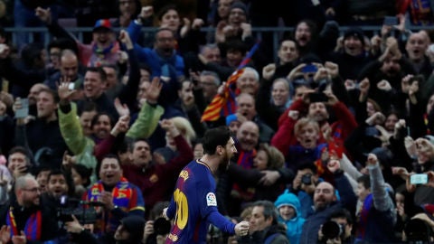 Era una final sin ser una final. Era un partido básico para el desenlace de la Liga aunque aún quedan once encuentros más. Así se presentaba el Barcelona - Atlético. Así llegaban los de Simeone al Camp Nou, con la oportunidad y la opción de hacer de nuevo posible un imposible. Pero no, esta vez no. Esta vez es el Barça el que sonríe, el que tiene medio título en la mano. El que, gracias a un gol de Messi, suma tres puntos ante su rival más directo en este curso para dejar muy encarrilado el trofeo a la regularidad.