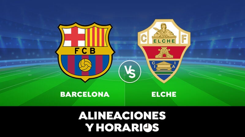 Ya conocemos las alineaciones oficiales del partido de fútbol de hoy entre Barcelona y Elche que se juega en el Camp Nou en la jornada 1 de la Liga Santander. Consulta a continuación las alineaciones oficiales y comprueba el horario y dónde ver el Barça - Elche en directo.