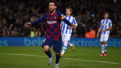 Un dudoso penalti transformado por Messi a diez minutos del final le da los tres puntos al Barcelona ante la Real Sociedad en un Camp Nou que volvió a pedir la dimisión de Bartomeu.