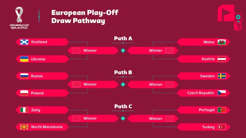 En concreto, Portugal se medirá a Turquía, mientras que Italia se enfrentará a Macedonia del Norte. Los dos ganadores se cruzarán en una de las tres finales que da plaza para el Mundial de Qatar 2022 en la confederación europea.