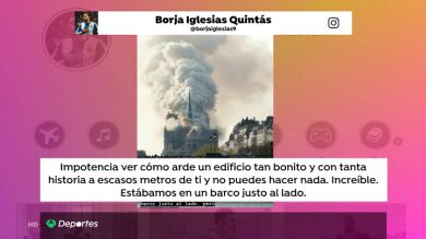 Consternado, y en medio de una gran humareda, lanzó la instantánea en sus redes: "Impotencia ver cómo arde un edificio tan bonito y con tanta historia a escasos metros de ti y no puedes hacer nada". Tan cerca estaba del incendio que hasta tuvo que tranquilizar a sus seguidores: "Muchas gracias a todos por los mensajes. Estamos bien".