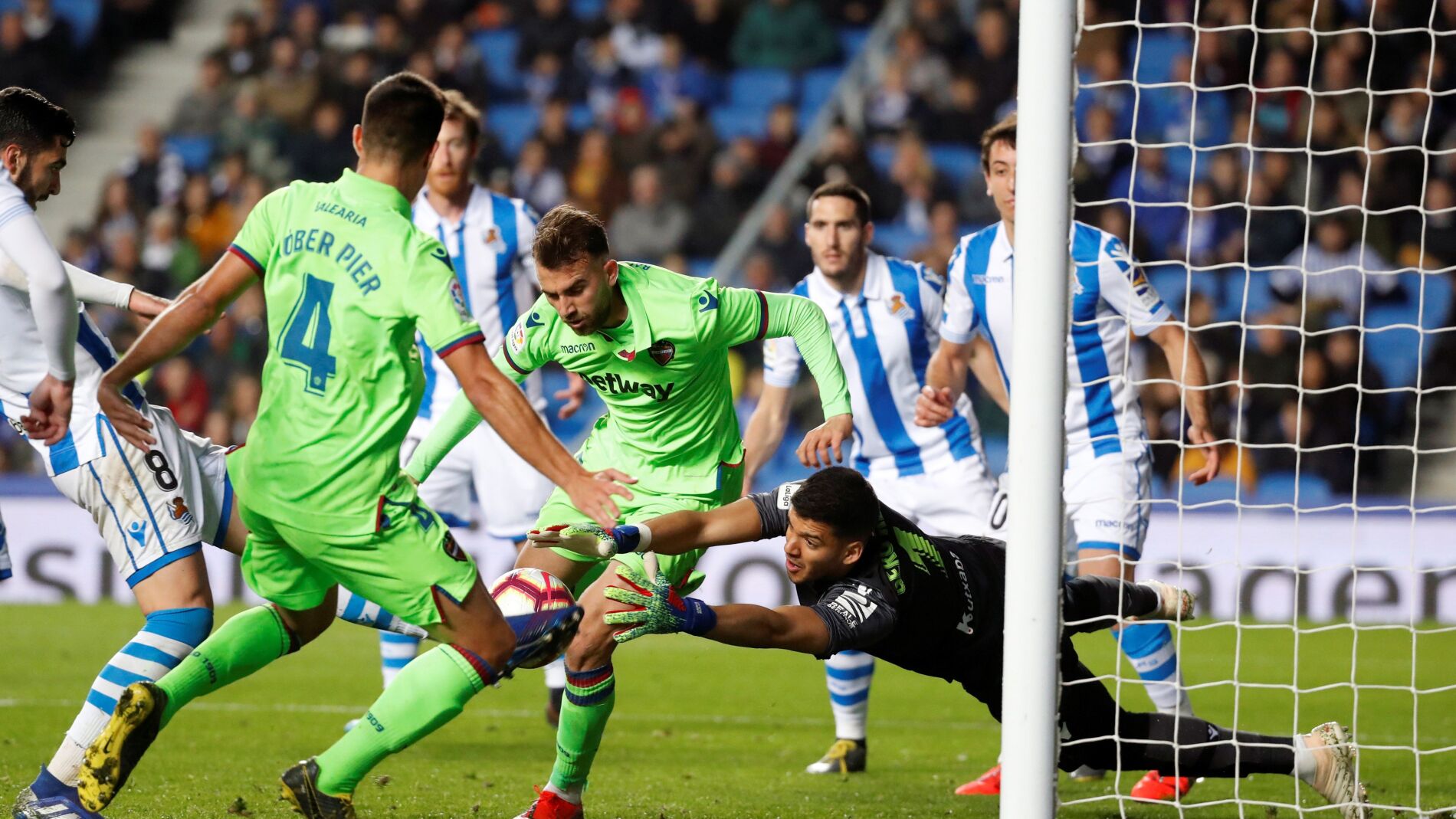 El Levante no había llevado casi ningún peligro, sin embargo la Real no necesita mucho para que se lo hagan y en otra indecisión de Rulli a balón parado esta temporada, Rochina erró el empate porque no llegó a creerse el regalo del guardameta argentino.