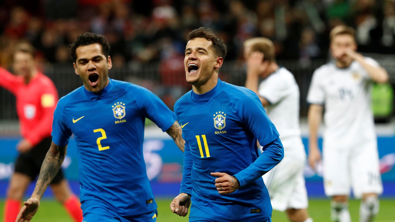 Brasil alargó su racha victoriosa con Tite de entrenador y derrotó con más goles que juego a Rusia (0-3) gracias a una buena segunda parte en la que destacaron los barcelonistas Coutinho y Paulihno.