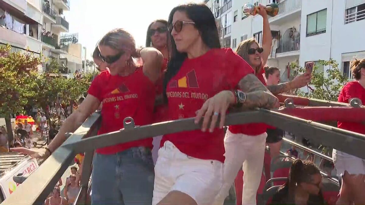 Las campeonas de la selección española recorren en autobús las calles de Ibiza