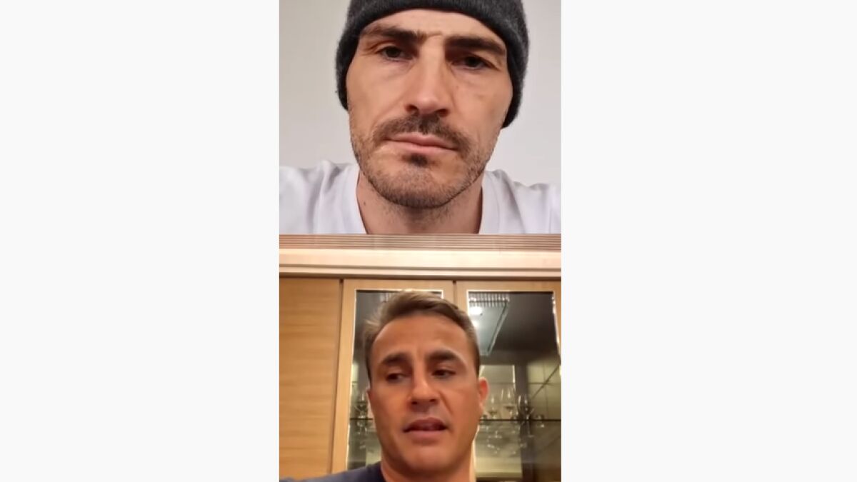 Iker Casillas y Fabio Cannavaro han realizado un encuentro online a través redes sociales en el que los exfutbolistas del Real Madrid se sinceraron sobre la expansión del coronavirus que ha puesto en cuarentena a todo el deporte.