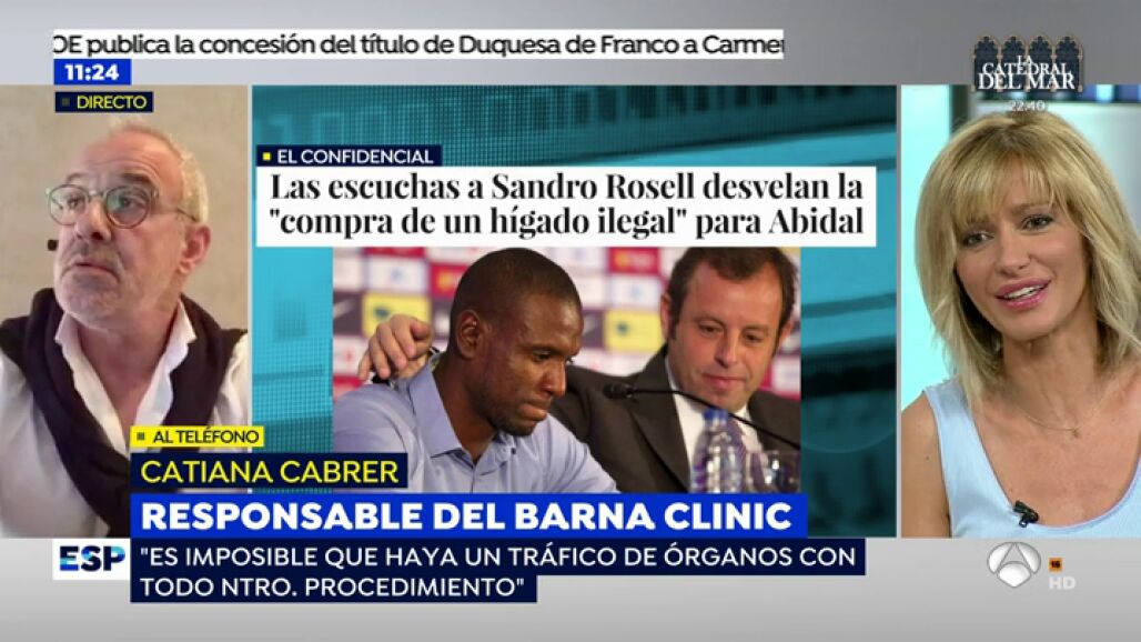 Catiana Cabrer, responsable del Barna Clínic, ha respondido en 'Espejo Público' a la información publicada sobre la presunta compra de un hígado ilegal por parte de Sandro Rosell para Eric Abidal.