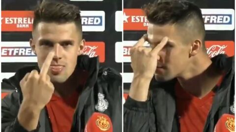 Cazan a un jugador del Mallorca haciendo una peineta antes de una entrevista en directo