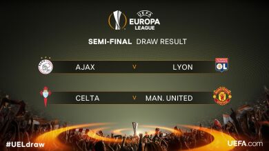 El RC Celta de Vigo se enfrentará al Manchester United en semifinales de la Europa League, según ha deparado el sorteo celebrado en Nyon (Suiza), mientras que Ajax de Amsterdam y Olympique de Lyon disputarán la otra eliminatoria.