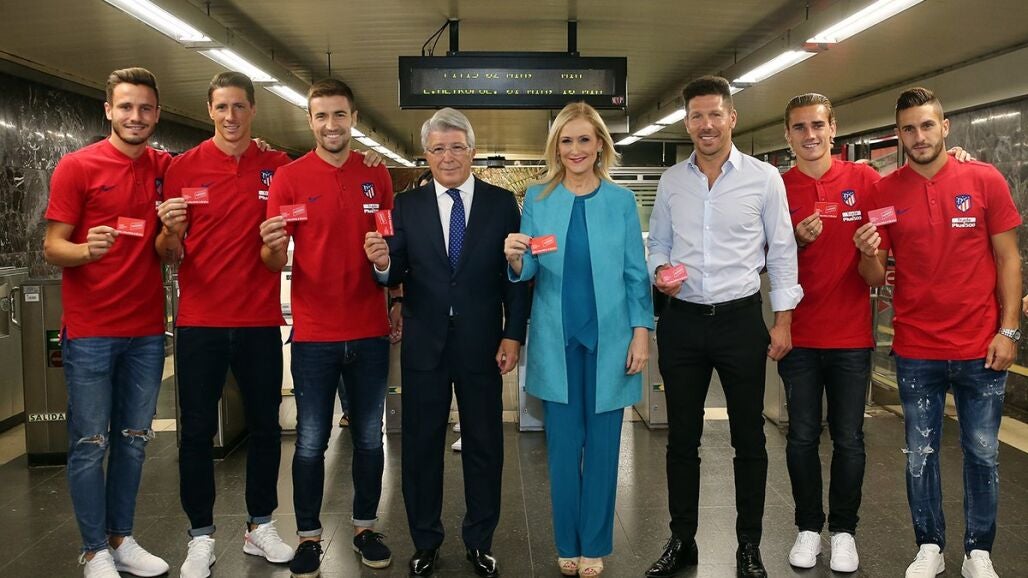 El presidente rojiblanco participó este jueves en un acto en la estación de metro 'Estadio Metropolitano' con la presidenta de la Comunidad de Madrid, Cristina Cifuentes, el entrenador argentino Diego Simeone, y los jugadores Gabi Fernández, Fernando Torres, 'Koke' Resurrección, Saúl Ñíguez y el francés Antoine Griezmann, para presentar una campaña que anima a los aficionados a acudir en metro al fútbol a partir del próximo día 16 contra el Málaga.