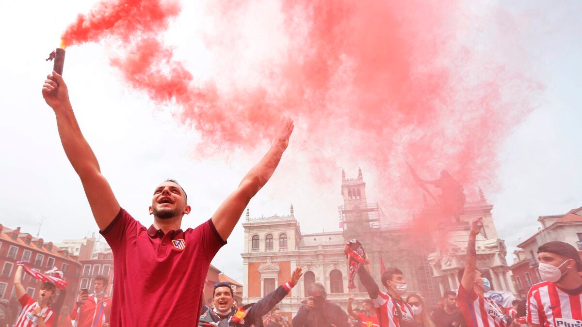 Cientos de aficionados del Atlético de Madrid se han desplazado a Valladolid para apoyar a su equipo en el trascendental partido de hoy. Si los rojiblancos ganan serán oficialmente campeones de la Liga Santander, solo dependen de sí mismos.